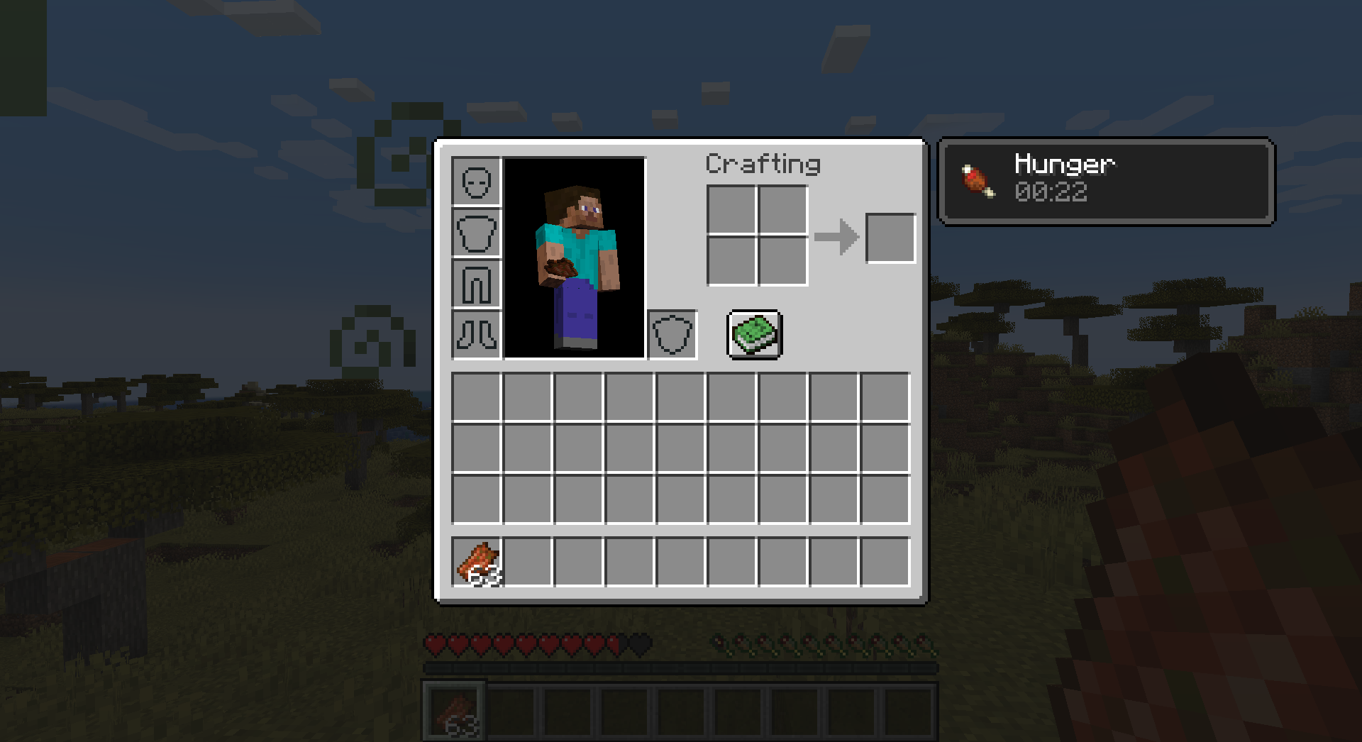 - Avoid sprinting, as it rapidly depletes your hunger bar.