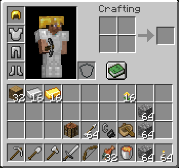 Later on, you can start to make nice houses and bigger bases in the Nether, but for now, a cobble shelter with the portal, a chest, and a crafting table is sufficient. The only necessities are iron armor, a pickaxe, sword, and shovel (all iron), food, bow and arrows, cobblestone for making quick shelters, dirt or gravel for pillar-jumping or stopping lava, and your trusty flint and steel. The rest of the items or extra supplies can be stored in the chests. If the player is going any distance, bring enough obsidian to make an emergency portal.)