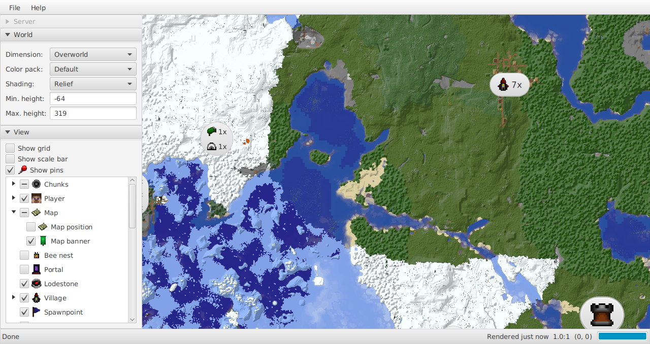 Mineways is meant more for exporting data into Blender and other digital content creation apps, but is also useful for mapping. It includes the ability to peel away terrain and look below. Similar to Minutor, which it is branched from. | Active | Java Edition 1.20.1 | Yes, BSD | C, C++ | Eric Haines | ||