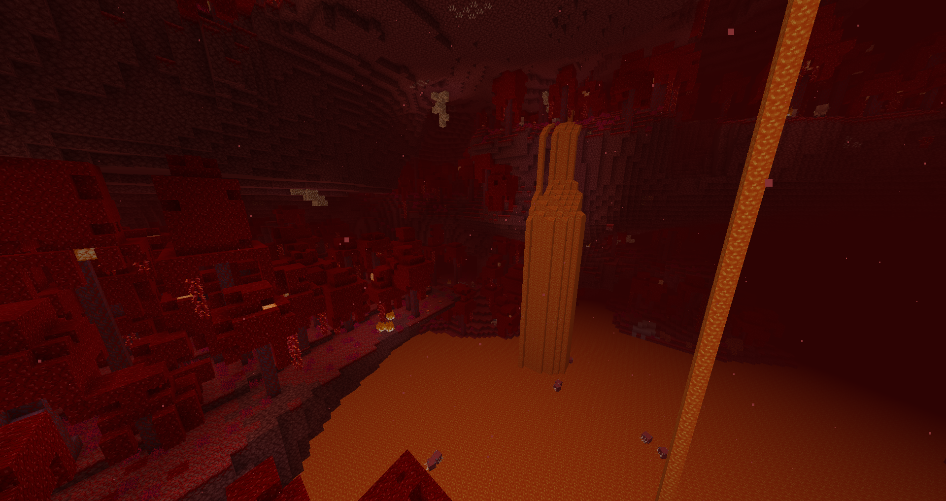 - Large expanses of netherack plains with ghasts, piglins, and zombie piglins. Easy to find exposed gold here.