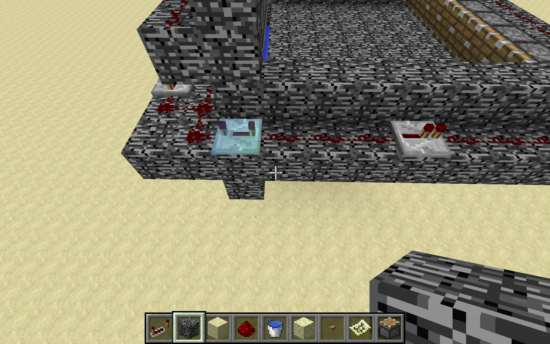 - Note that obsidian was used here to reduce the possible damage in case of misfires, but feel free to use any other strong, solid block.