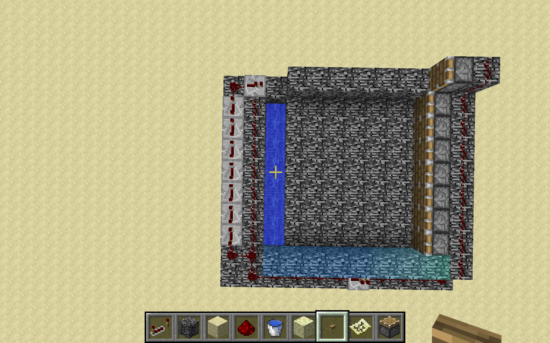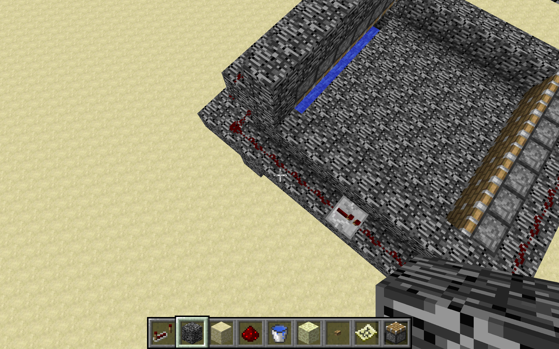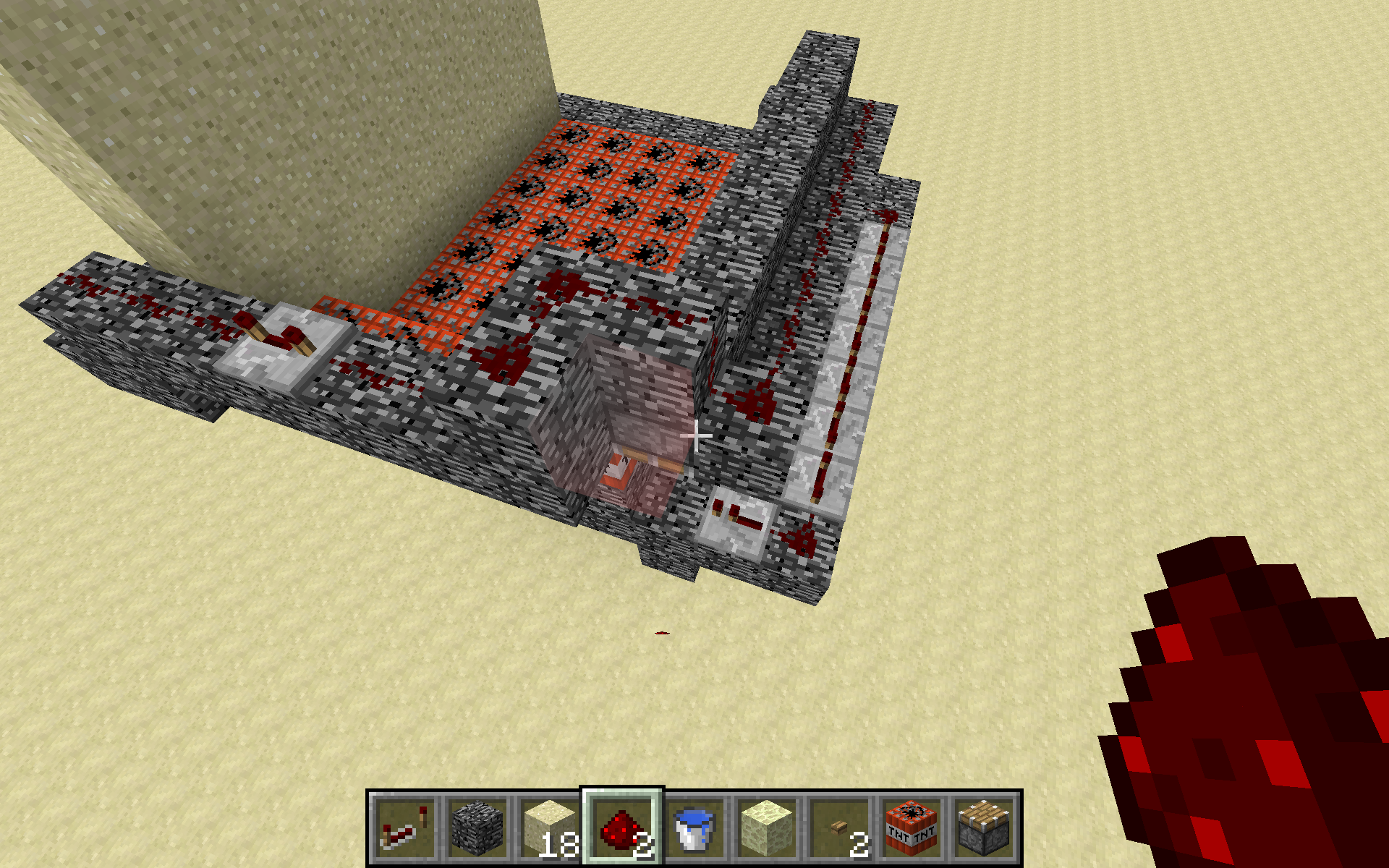 Sand cannons are a variation of the TNT cannon that is harmless. The concept is the same, but uses sand as a projectile. Also, the sand must be falling as the TNT in the cannon explodes, shooting the sand, otherwise, nothing happens. It is possible to pile the sand up to make a "sand shotgun cannon", which can fire multiple sand blocks at different distances. Note that the sand cannon generally only fires in one direction and is not destructive. It can be used for pelting sand at people's plots in creative multiplayer plots servers, and in turn, making moderators mad. Sand cannons are also commonly used by griefers on multiplayer servers. While the victim is doing renovations on their claimed land, griefers may build a sand cannon as quick as possible as to not being caught, and fire several blocks of sand to the top of the victim's house while they are doing construction in hopes that they will break a block on their roof and have sand fall on top of them.