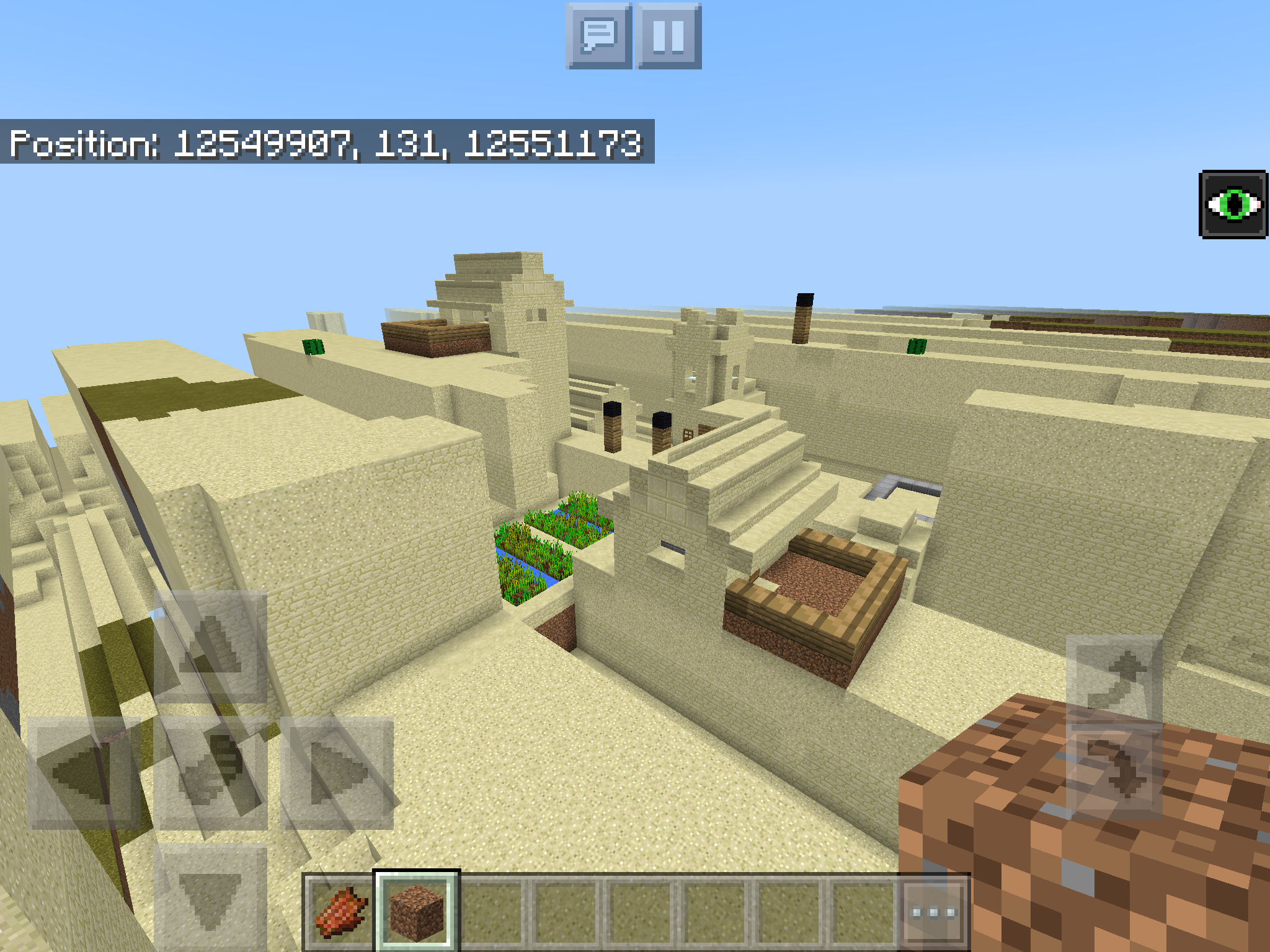 A desert temple generated in midair close to the start of the skygrid.