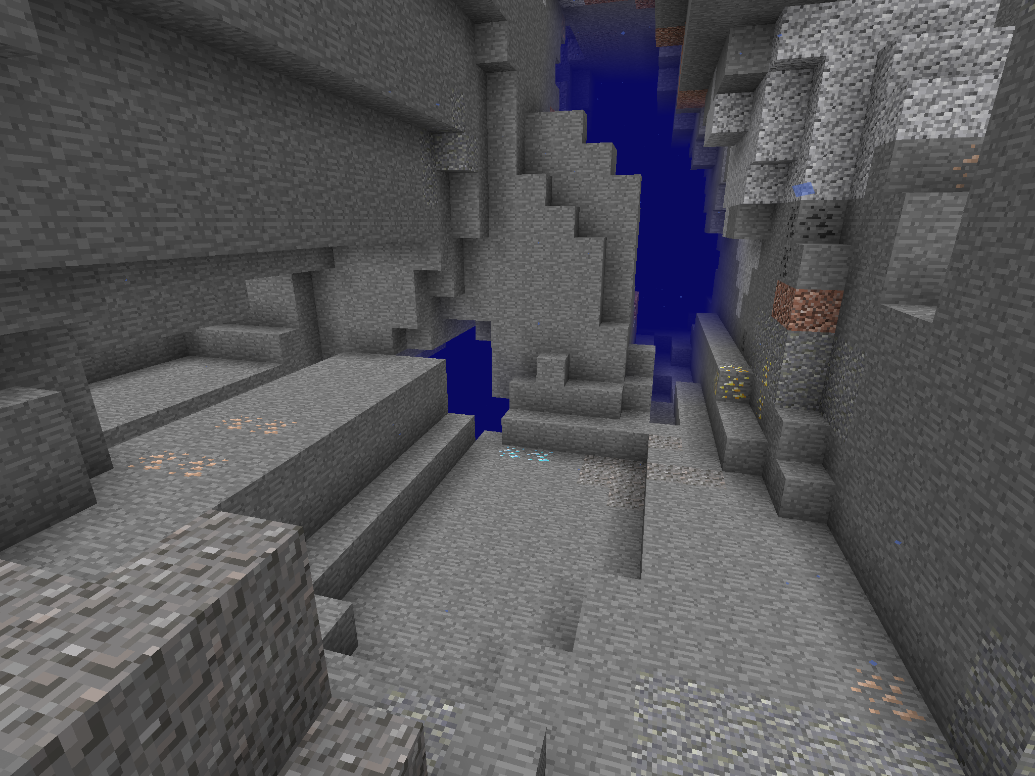 A cave in the Edge Far Lands. Caves and ravines also generate this way in the Sky grid and Nothingness regions.