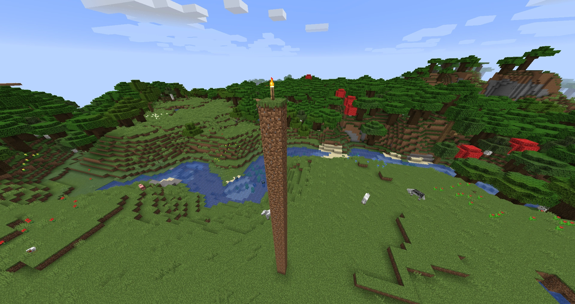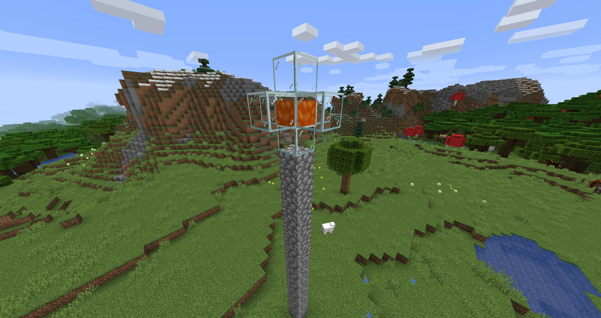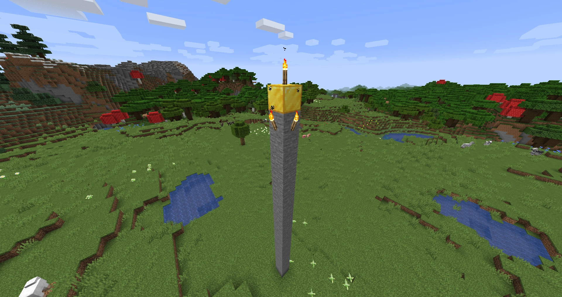 - Build a pillar right outside the grid (two blocks away from the center). This one should be made out of a weak and preferably collapsible material such as sand.