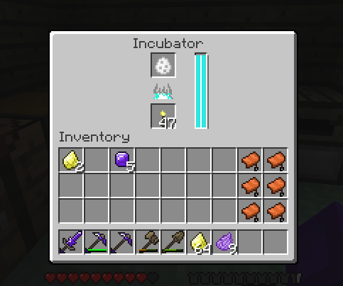 - Ah ok, the incubator is easy, but is it needed? It basically just spawns animals according to the egg you put in right? You wouldn't actually need to show it on any pages. I don't think the inventory needs to be done, because you don't use it to make anything that needs to be displayed on each item's page (and the 2x crafting grid is just the default minecraft one moved around a bit, and we've got the crafting grid for anything that could be made there). –ultradude25 (T|C) at 17:35, 24 July 2012 (UTC)