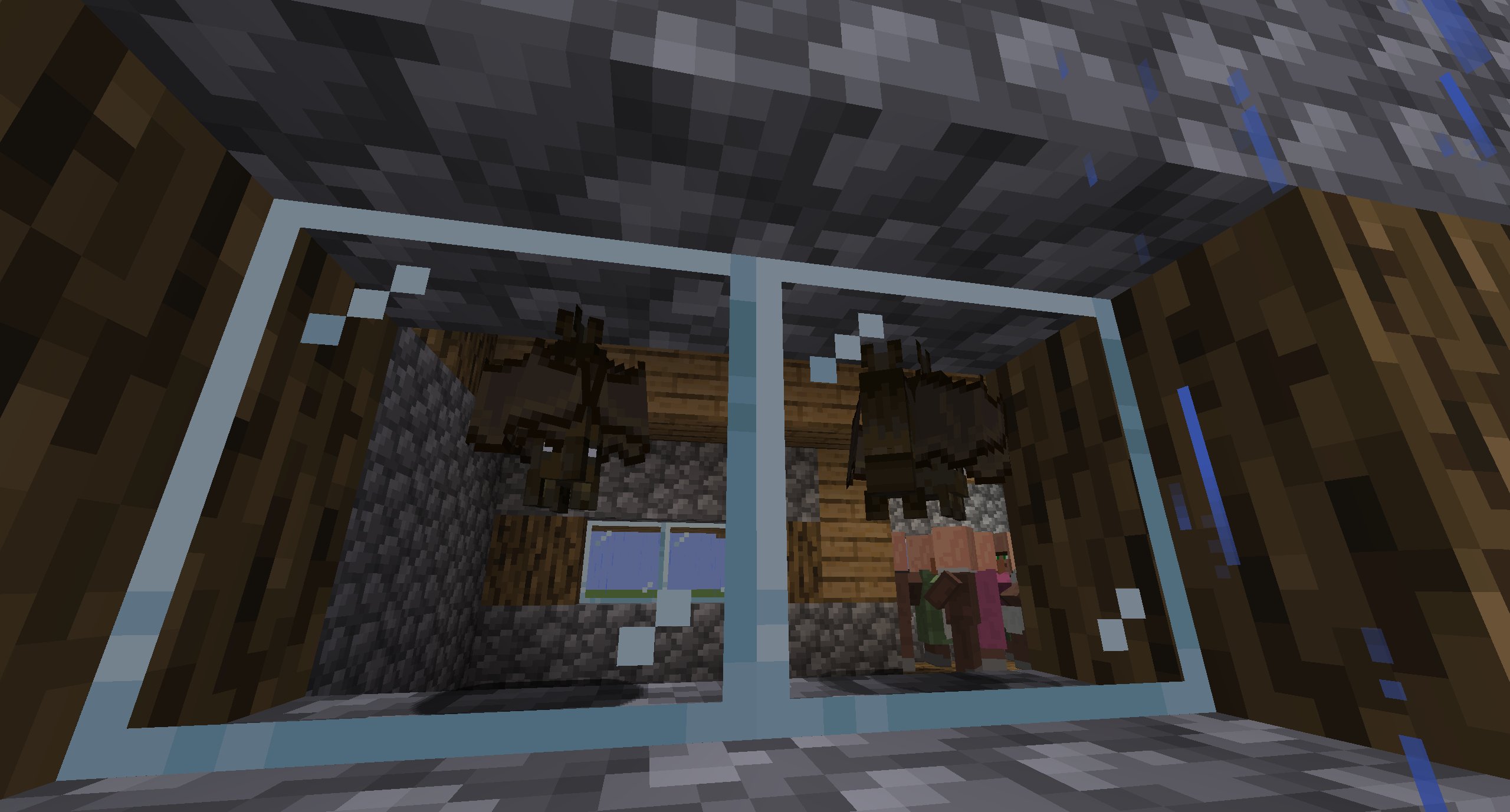 In an abandoned village, all generated villagers are instead zombie villagers, and all doors and torches are missing. The zombie villagers do not despawn, but have no resistance to sunlight. The zombie villagers spawned inside these villages behave similar to drowned as they stay in the shade even when a player or villager are nearby, only coming out when the sun has set. In abandoned villages, most cobblestone blocks are replaced by mossy cobblestone, random blocks (particularly wood) are replaced by cobwebs, and all glass panes are replaced by brown stained glass panes to represent dirty glass. Abandoned villages also spawn stray cats, as well as the usual village livestock, but they do not spawn iron golems. The amount of buildings in an abandoned village can be slightly more than a normal village.