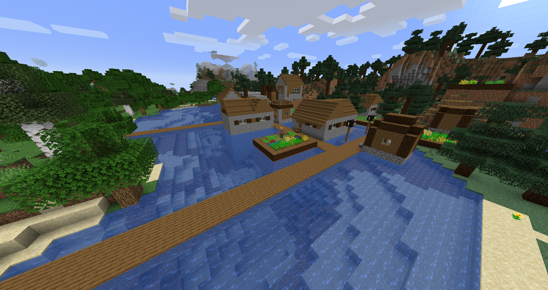 | July 1, 2011 | A picture of villages was released by Notch before Beta 1.8 was released. In the early screenshot, villages were partly made of moss stone. | ||||||||||||||||||||||||||||||||||