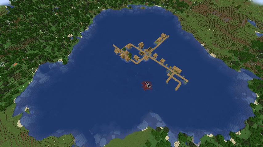 If a building or pathway generates over open-air, circular or square platforms of grass or sand (depending on the terrain) generates below the structure, which can cause surface oddities. These platforms do not generate beside cliffs or over the void; rather, they generate on the lowest blocks. Platforms can be clearly seen when a village building generates over an ocean. Farms generate a few blocks of open space above them if they happen to generate inside a hill. Village buildings can also generate suddenly on the top of a windswept hills while the other buildings are at the bottom of the windswept hills. This happens often in savanna villages.