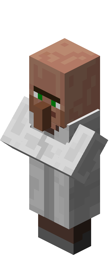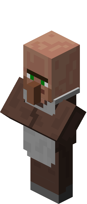 Villagers are passive mobs that inhabit villages, work at their professions, breed, and interact with each other. Their outfit varies according to their occupation and biome. A player can trade with them using emeralds as currency.