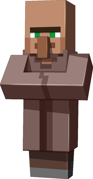 Villagers are passive mobs that inhabit villages, work at their professions, breed, and interact. Their outfit varies according to their occupation and biome. A player can trade with villagers using emeralds as currency.