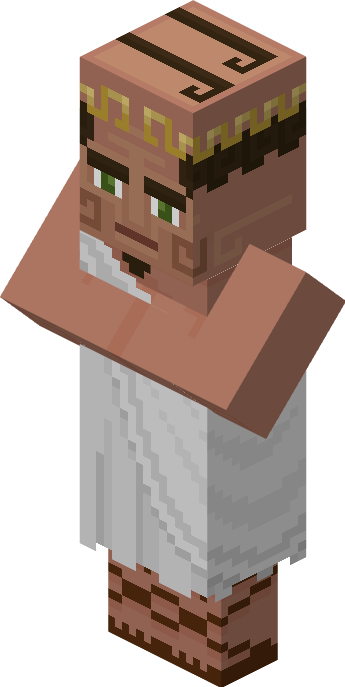 Villagers are passive mobs that inhabit villages, work at their professions, breed, and interact with each other. Their outfit varies according to their occupation and biome. A player can trade with them using emeralds as currency.