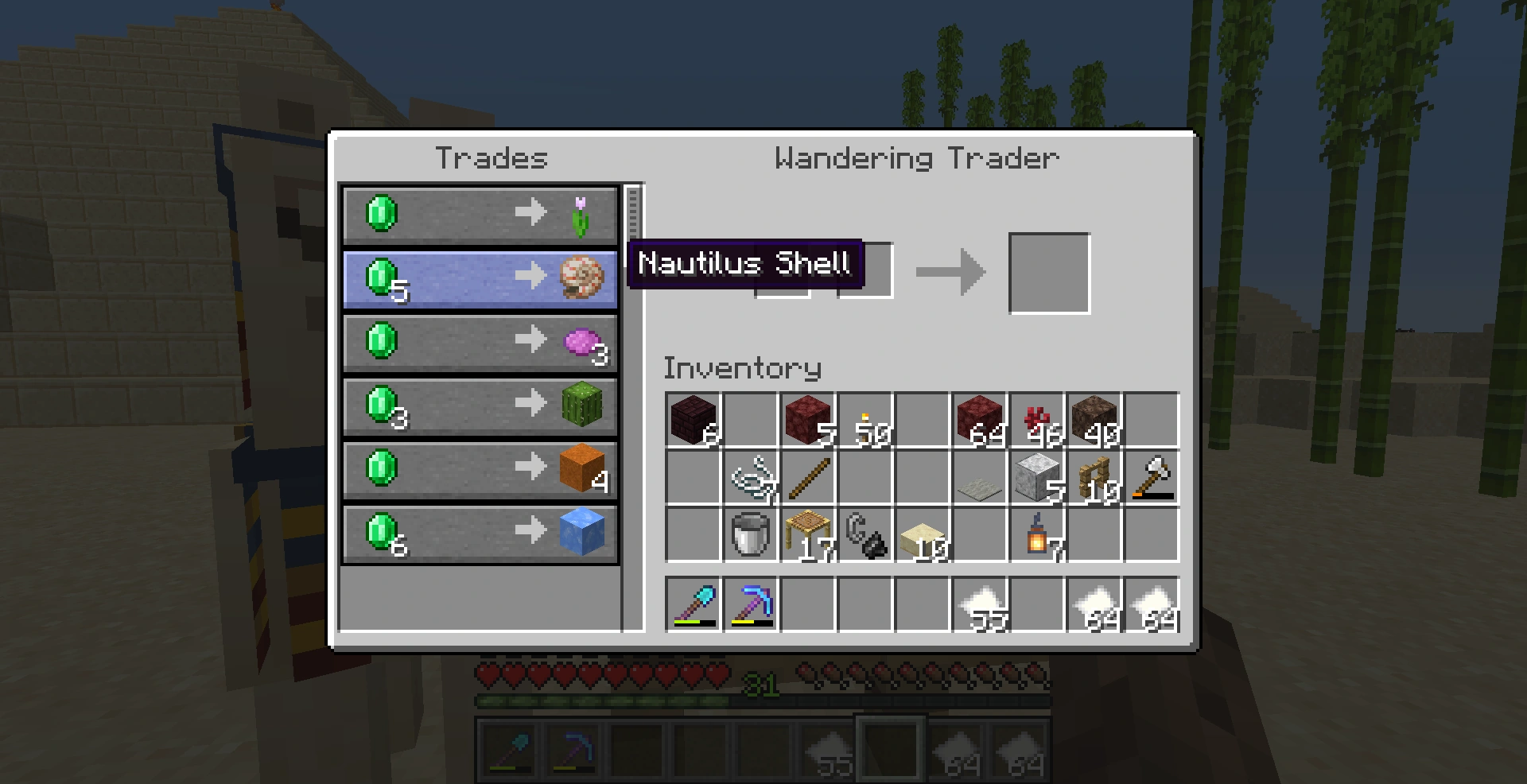 The wandering trader is a passive mob that randomly spawns near the player. It can trade, making natural items more available, less dangerous to obtain, and in some cases, renewable.