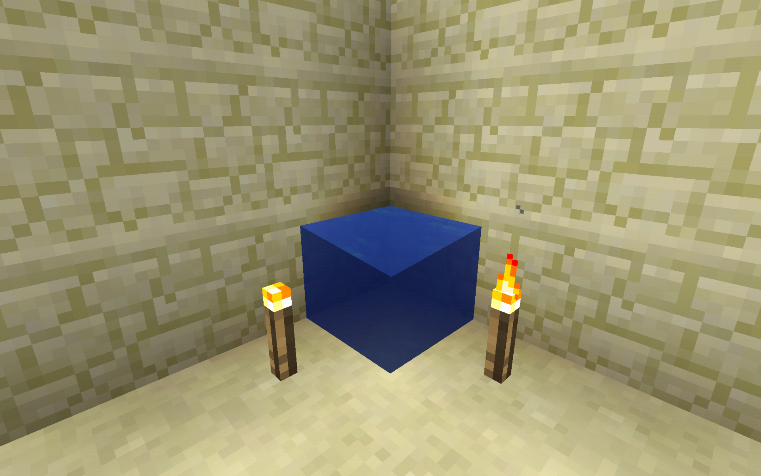 Unlike other translucent blocks such as ice, stained glass and tinted glass, water shows the opposite sides of its external planes when viewed from within and from outside.[4] However, it applies only to the top plane and four side planes; the bottom face is always unseen from above.[5]