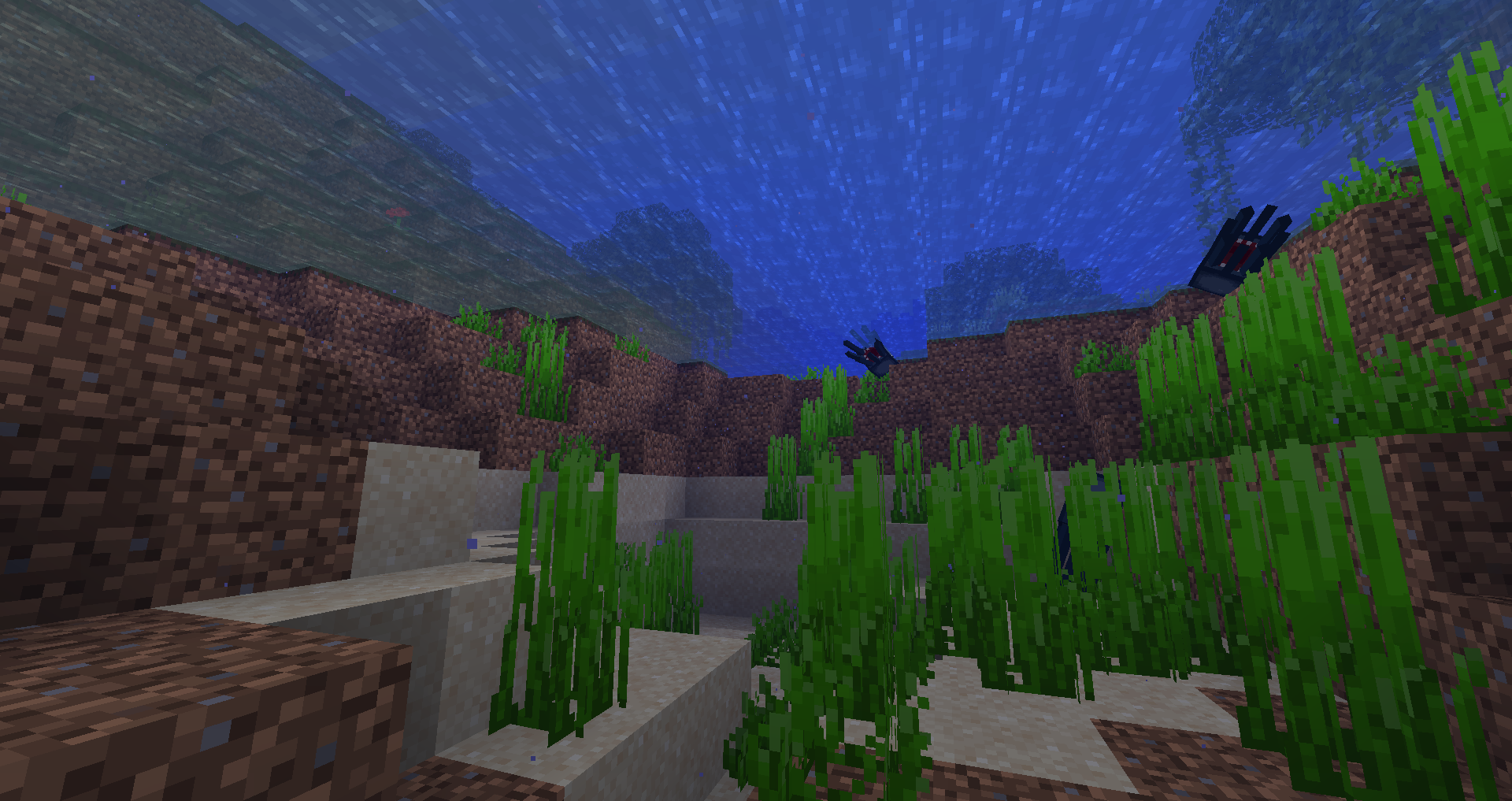 - If there is a block in the water, there is a small pocket of air beneath it due to the fact that a water source block is slightly shorter that the standard one meter block. If a player swims up while underneath this block and holds the space bar, a glitch may occur; the water itself will look like air and will no longer seem to block light while holding the space bar. This glitch allows a clear view of the ocean floor (Personally, I have had the most success causing this glitch when I use stairs made of stone bricks.)