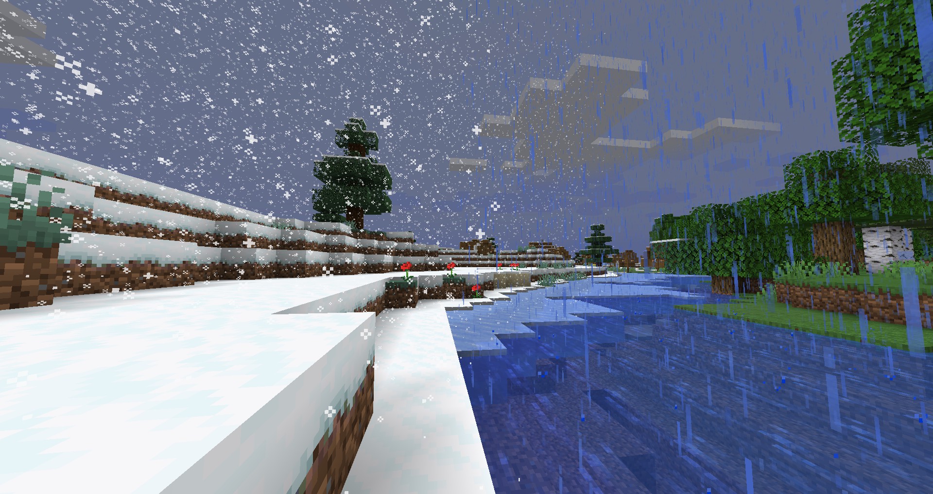 - Sometimes rain falls in snow biomes.