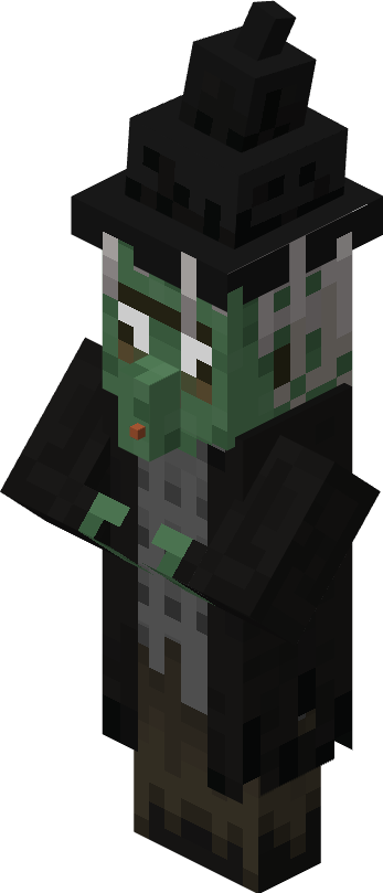 The witch is a hostile mob that uses potions in combat, both in the form of weapons as splash potions and in the form of drinkable potions for defense.