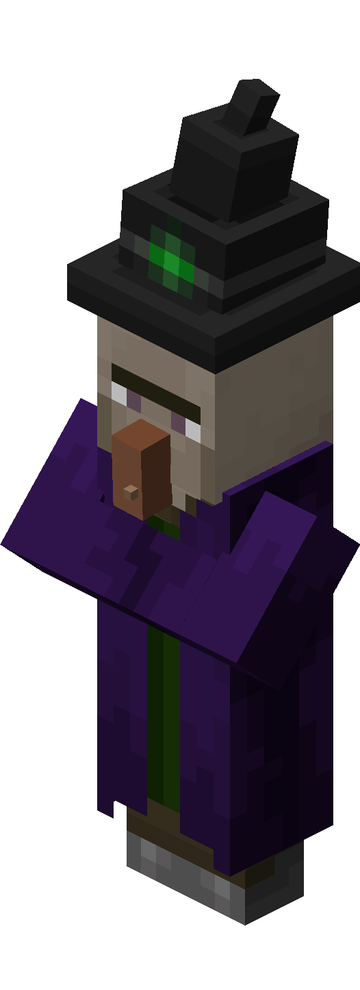 - ↑ "The cowl on the witch is not intended. The cowl was always in the texture map but it just wasn't rendered. Due to the new villager model system now it does." – @JasperBoerstra (Jasper Boerstra) on X, December 13, 2018