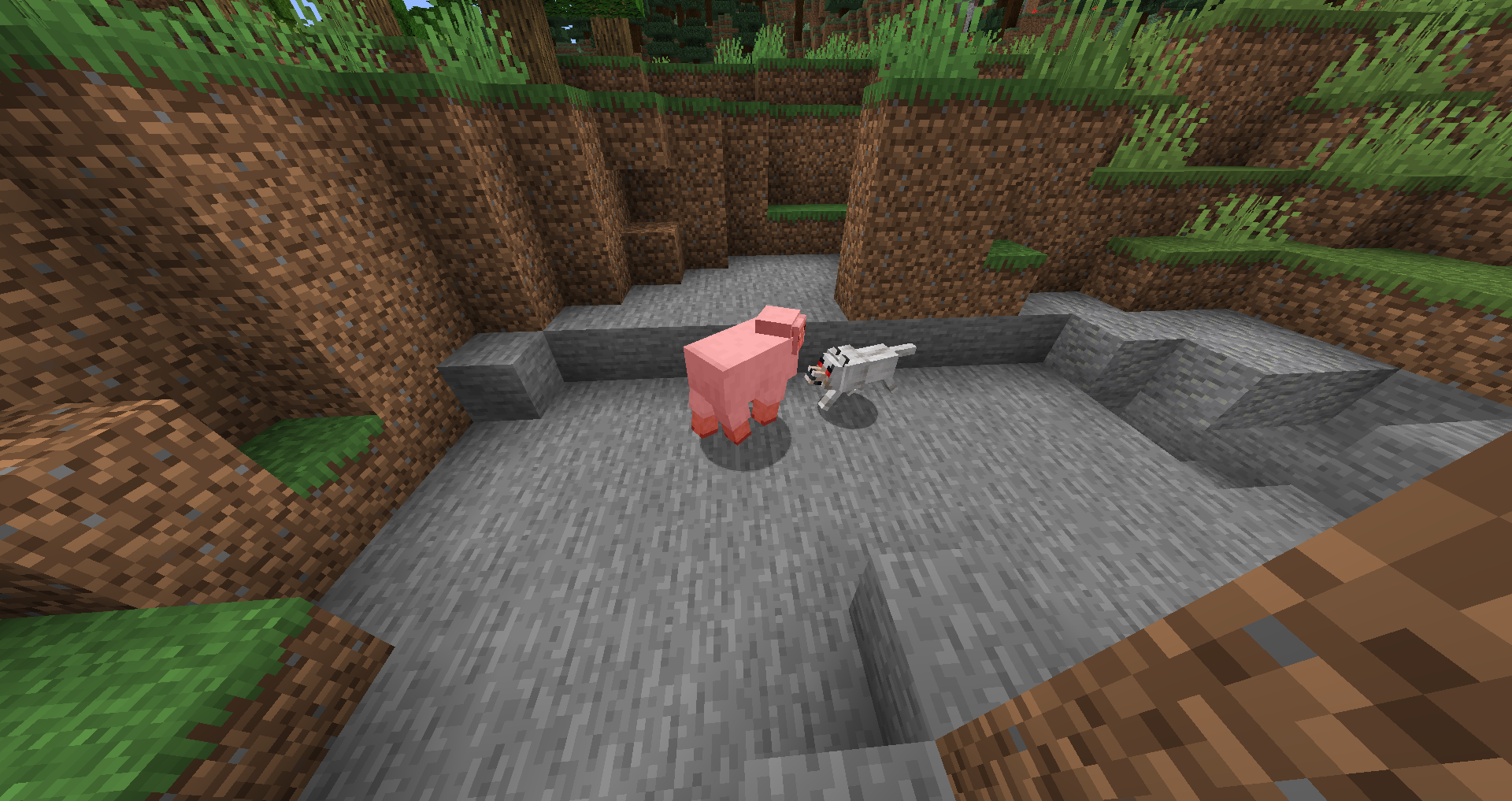- In singleplayer, if the player punches a wild wolf and leaves its field of vision, it stares at the player and does not move at all. Going back into its range causes it to continue pursuing the player.