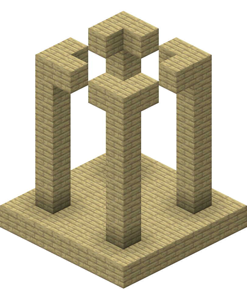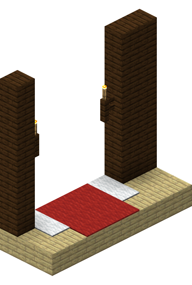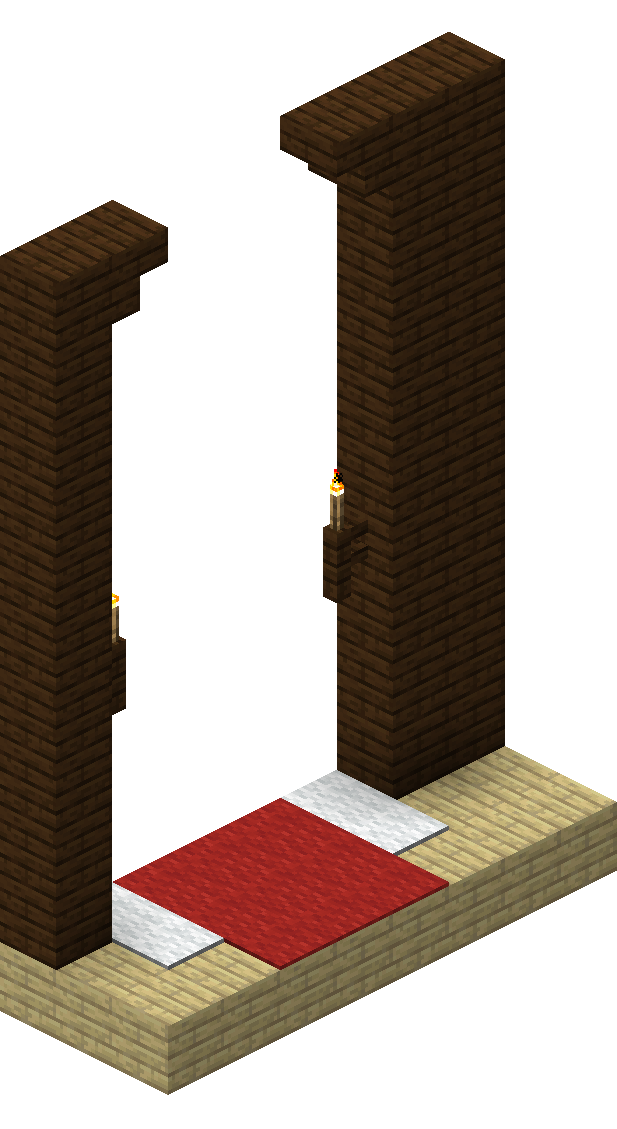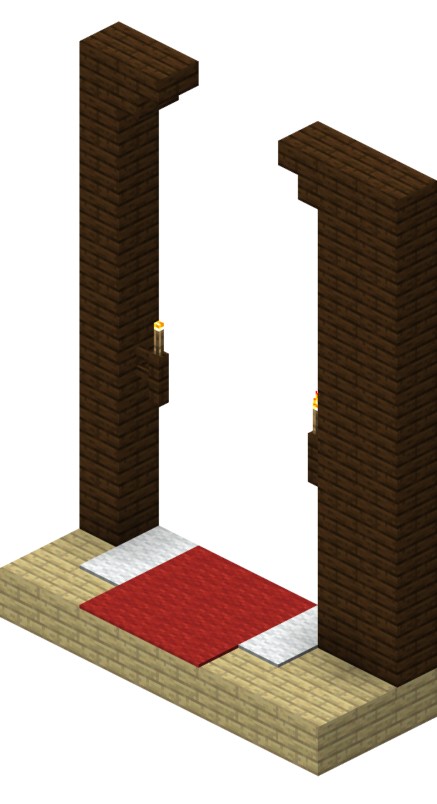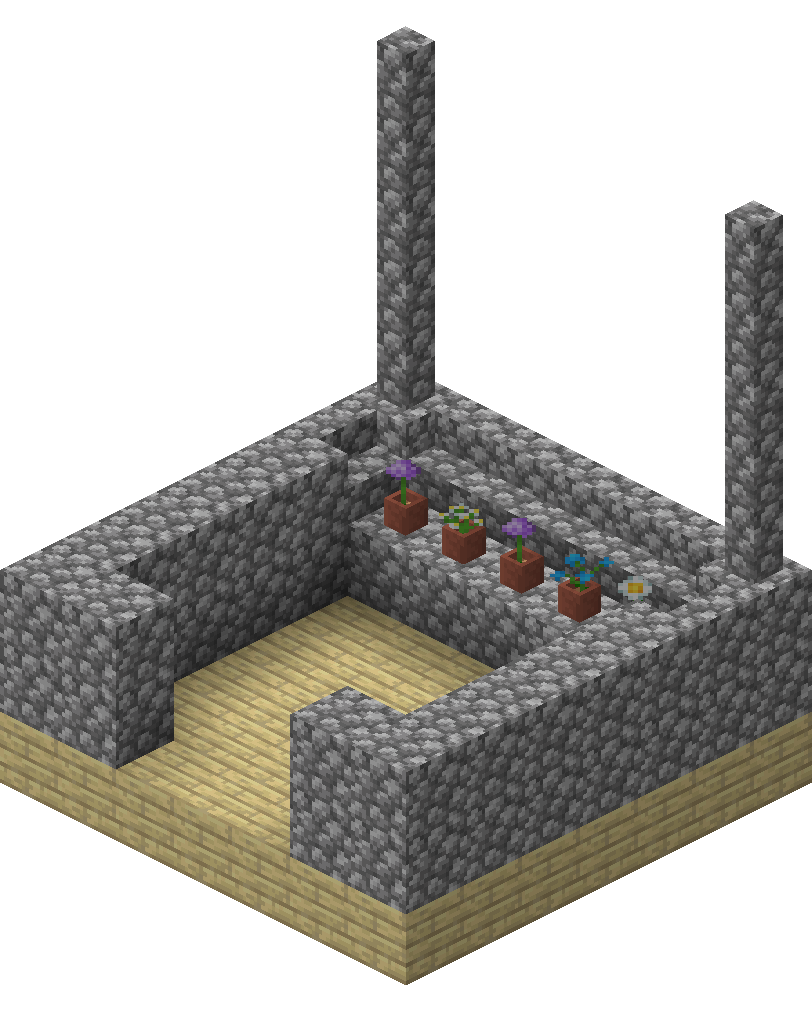 A secret room with four birch plank pillars erected toward the ceiling. These rooms may generate on any floor. |