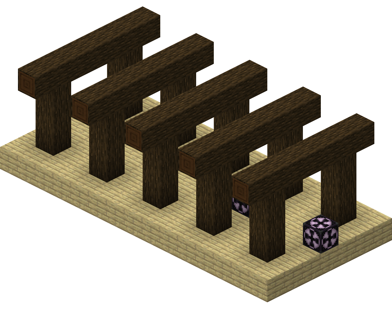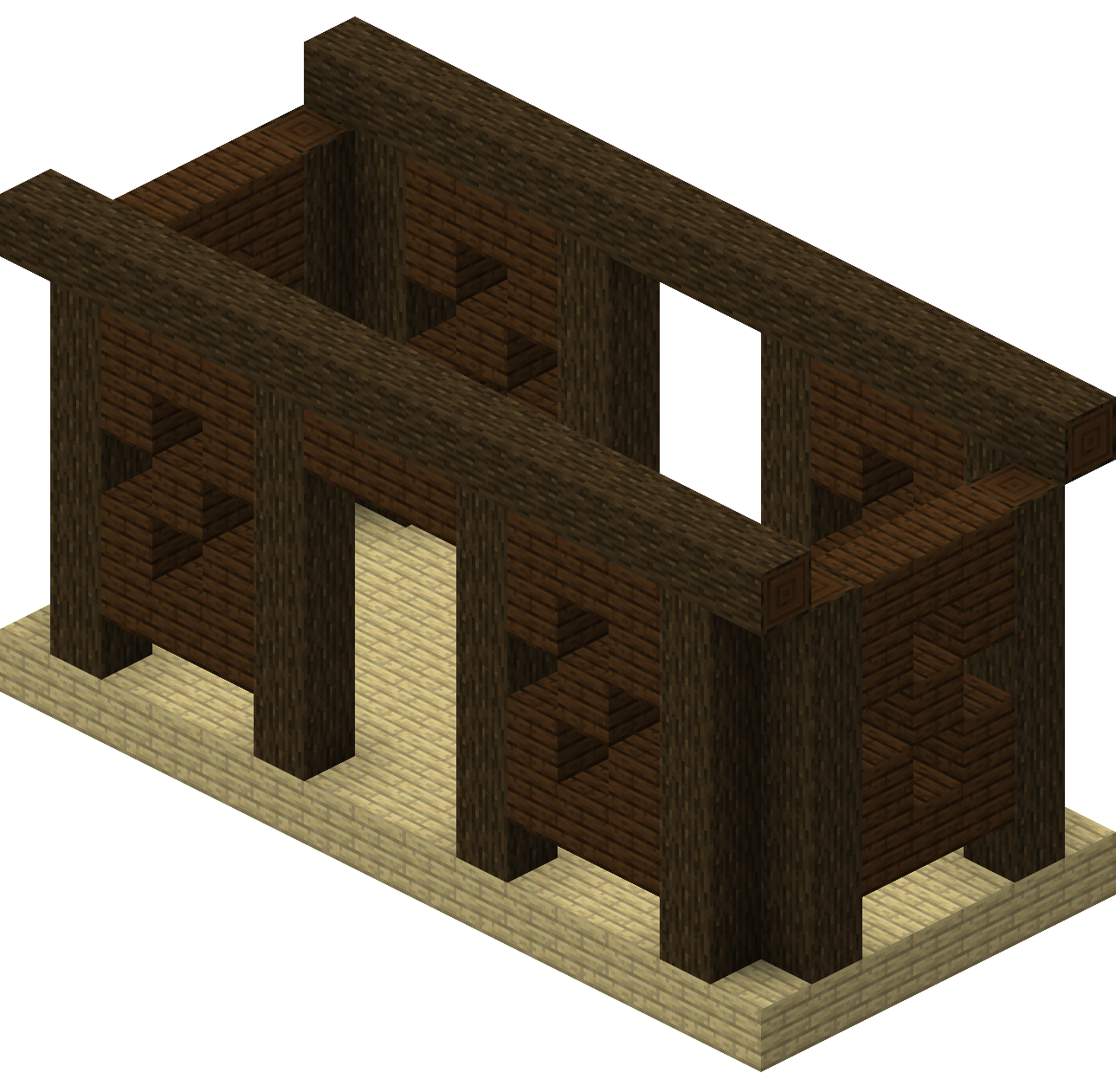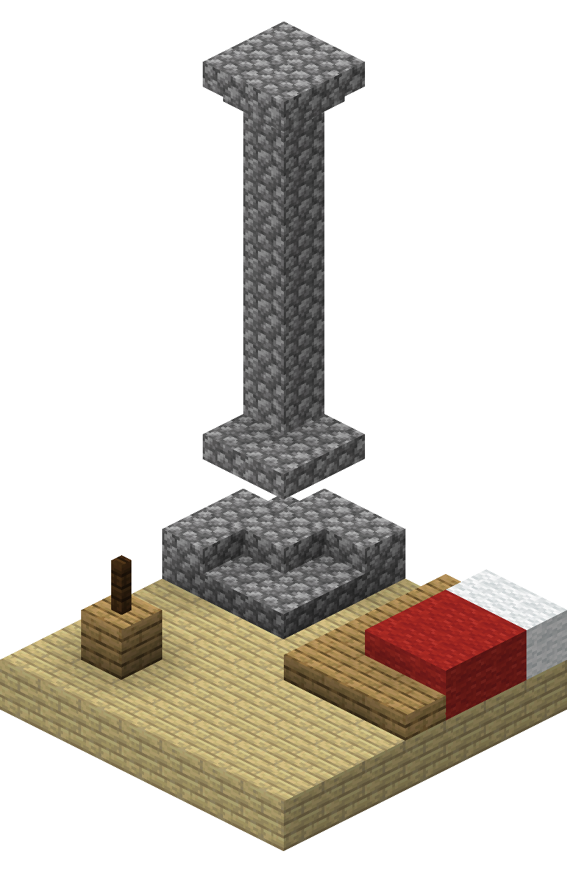 A secret room with four birch plank pillars erected toward the ceiling. These rooms may generate on any floor. |