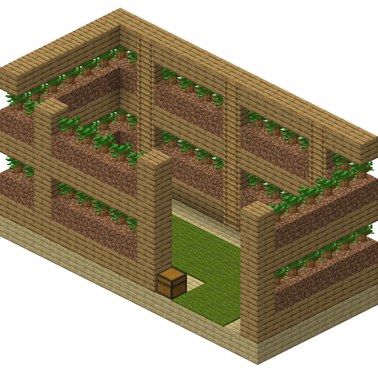 A room with a two-tiered farm, with the lower one growing pumpkins and the upper one growing melons. A vindicator always generates here. |