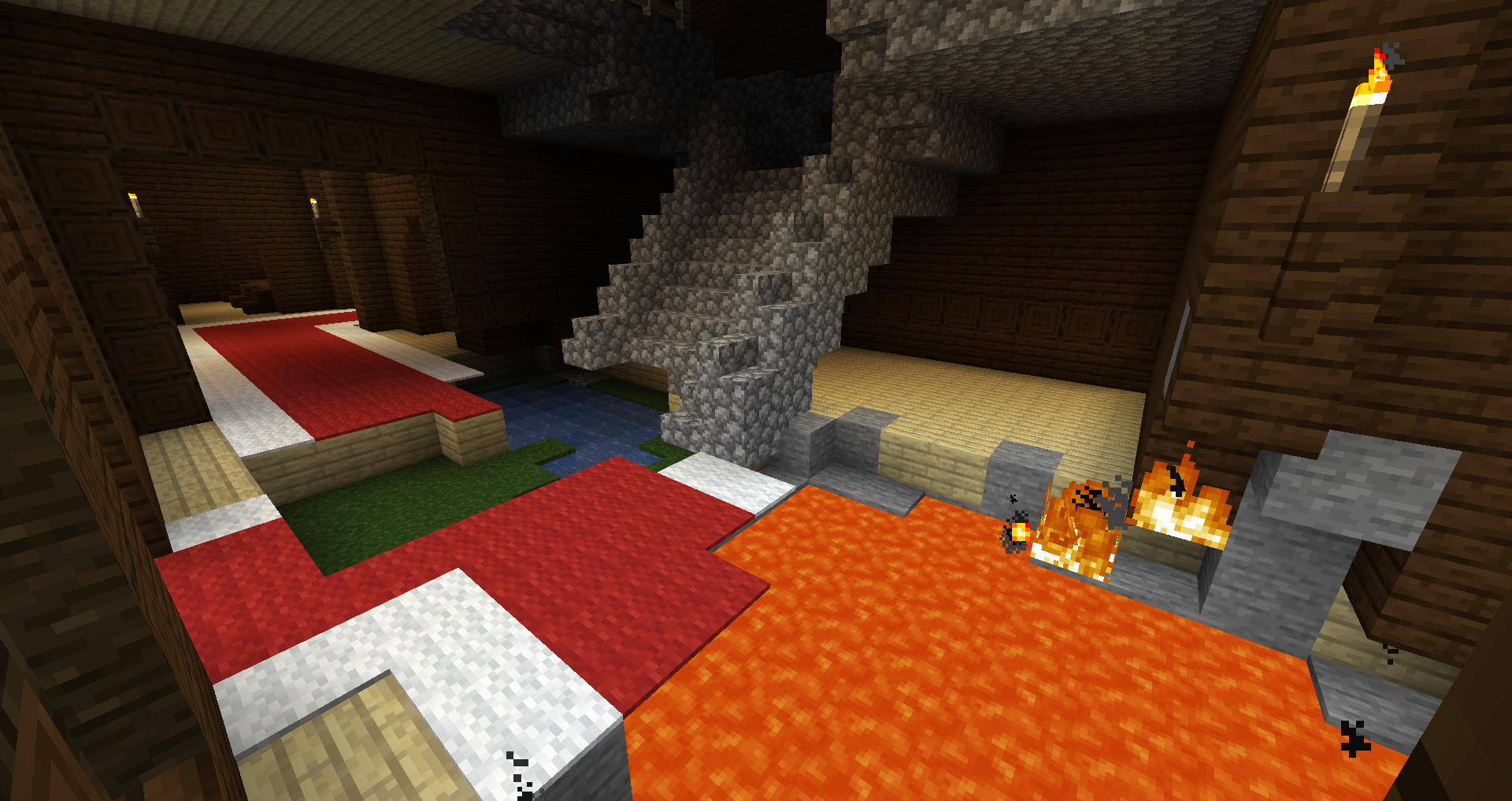A room with arches made of polished andesite. Located at the end of the room is a damaged anvil and a lava pool encased by polished andesite to prevent the surrounding planks from burning. A vindicator always generates here. |