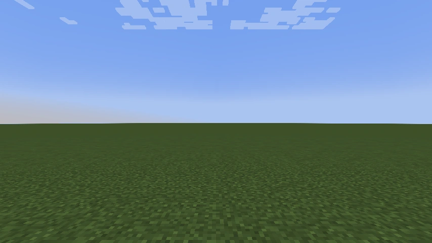 | Superflat | This type of generation creates a world that is completely flat. It has an altitude of 4, but has no Void Fog. The first layer is composed of Bedrock, with two layers of Dirt on top of it, and topped off with a layer of Grass. Mobs spawn normally, with a large amount of them being Slimes. As no trees or ores exist, this World Type is only useful in Creative Mode. |