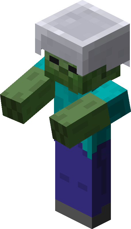 ), giving 1.6 to 8% damage reduction from most sources. Zombies can also wear mob heads, although they need to be dropped by the player before the zombie can pick one up and put it on.