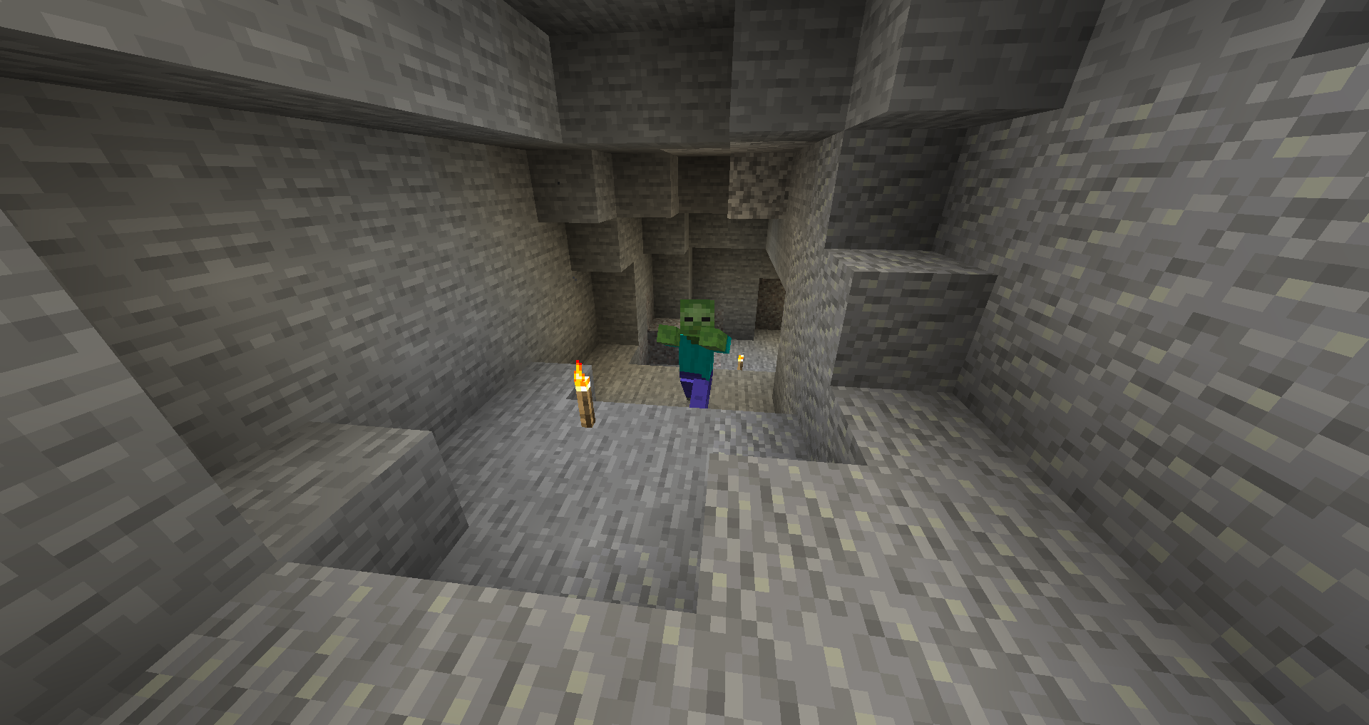 A skeleton and zombie in a cave.