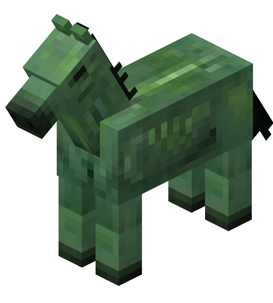Zombie horses appear to be the horse equivalent of zombies. Like zombies, zombie horses are green-skinned, and their eyes are completely black.
