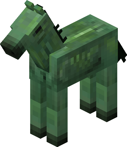Zombie horses appear to be the horse equivalent of zombies. Like zombies, zombie horses are green-skinned, and their eyes are completely black.