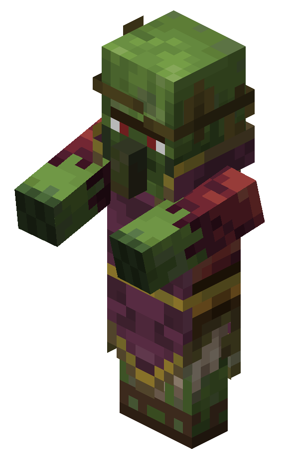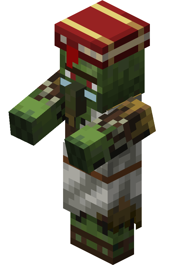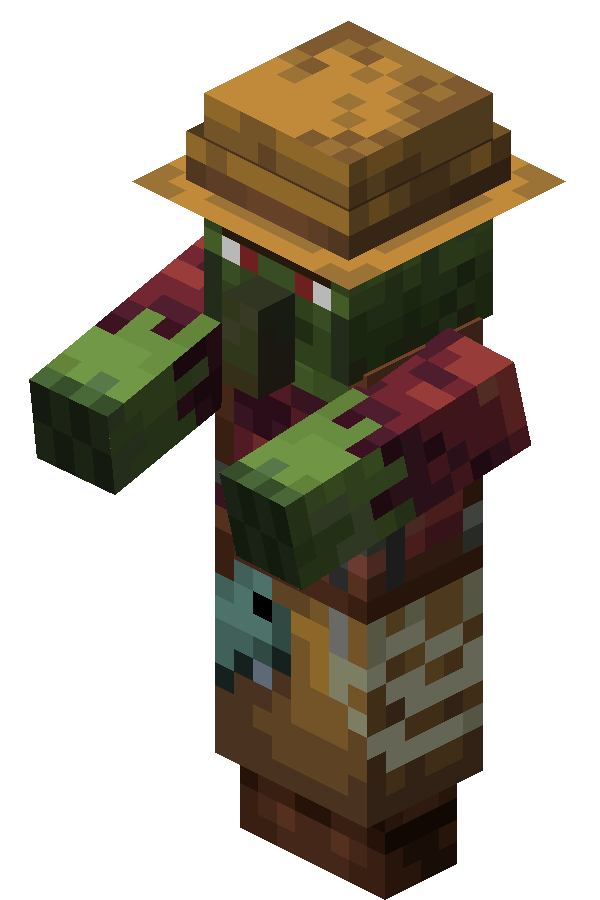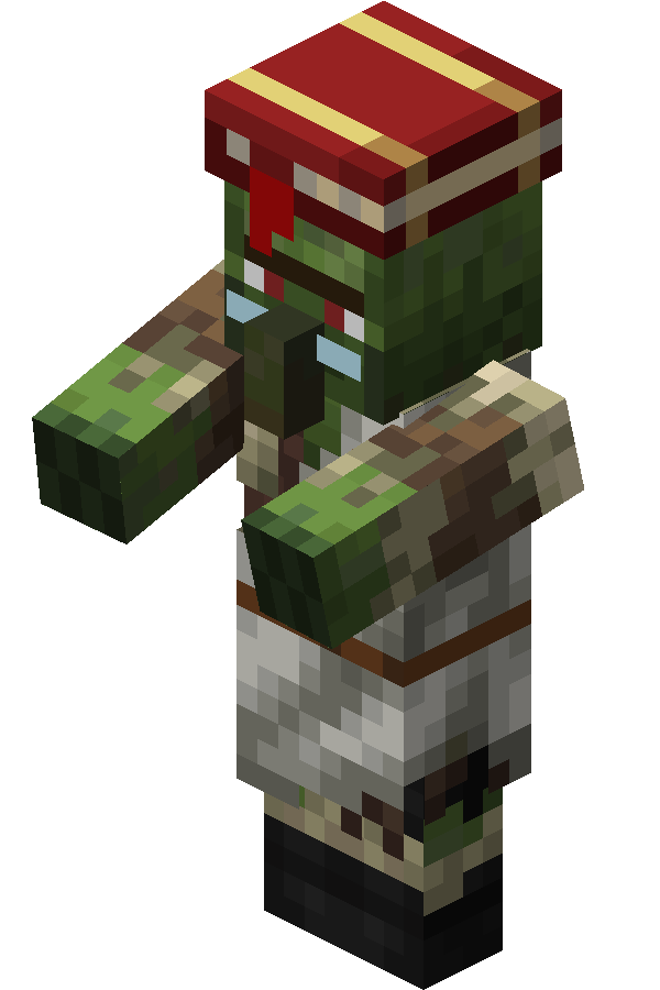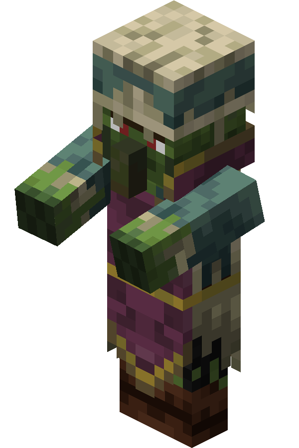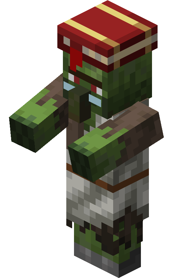 A zombie villager is a variant of the zombie that can be cured into a normal villager using a golden apple while it is under the effect of Weakness.