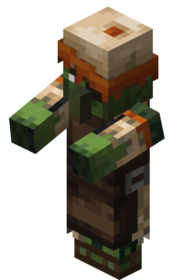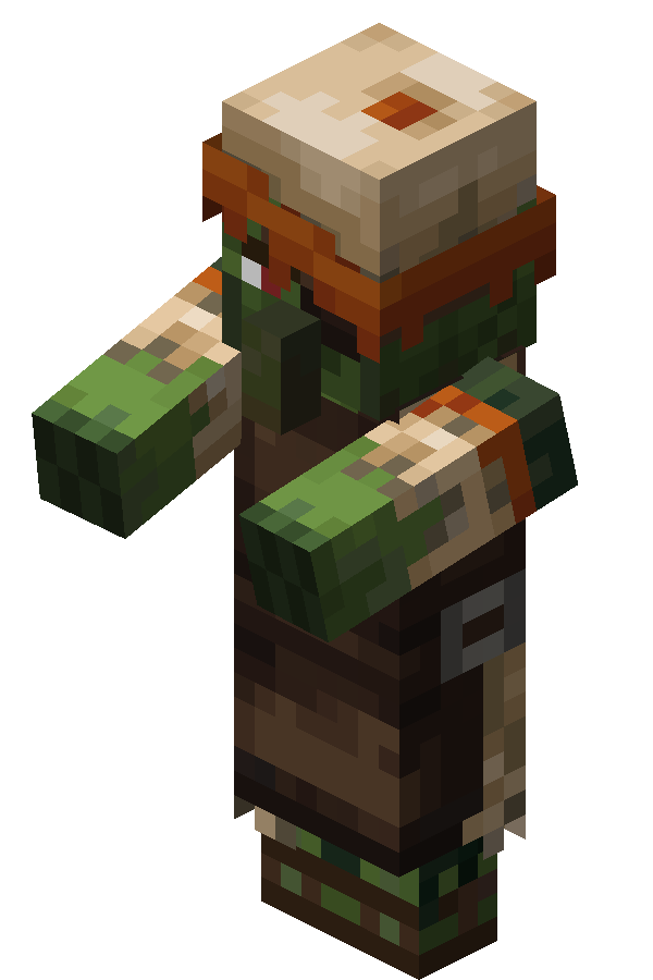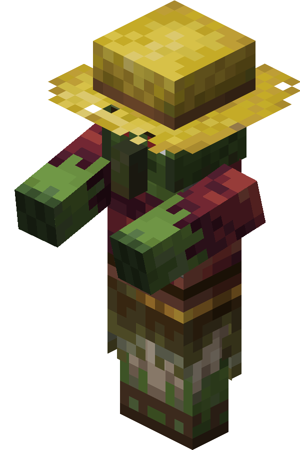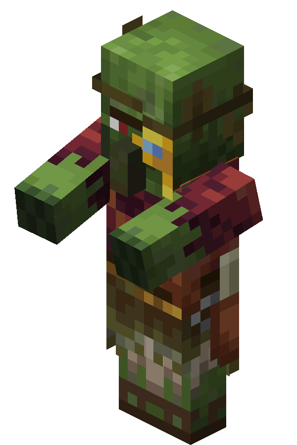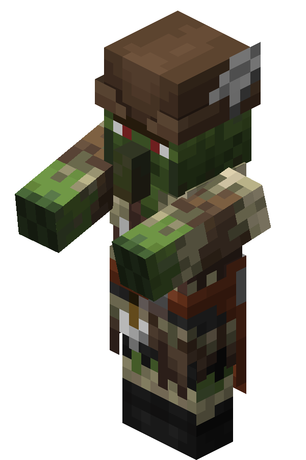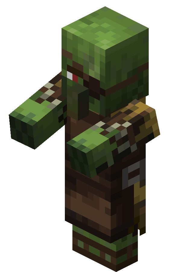 A zombie villager is a variant of the zombie that can be cured into a normal villager using a golden apple while it is under the effect of Weakness.