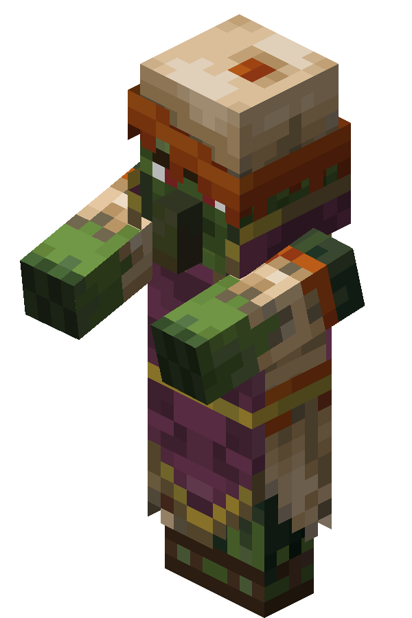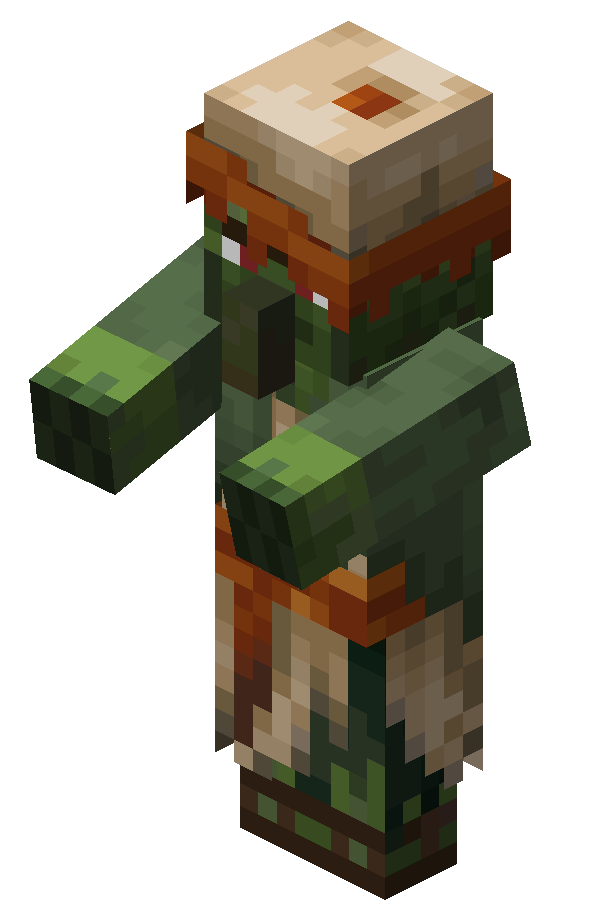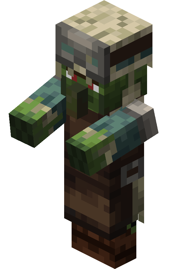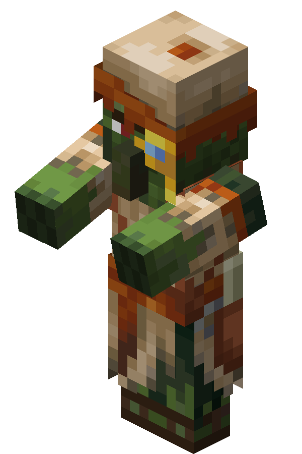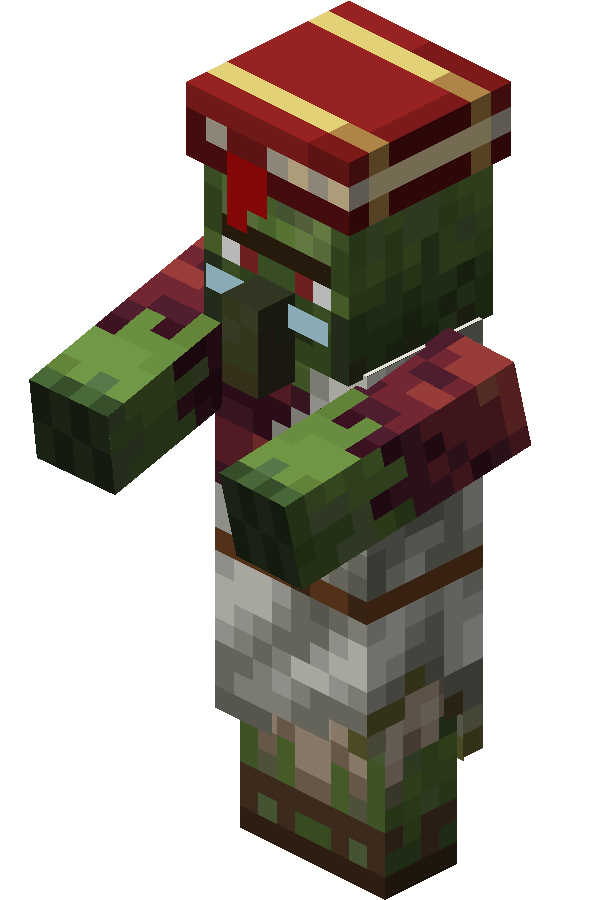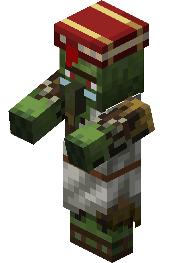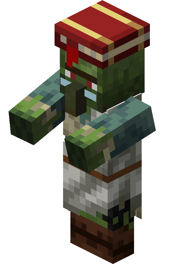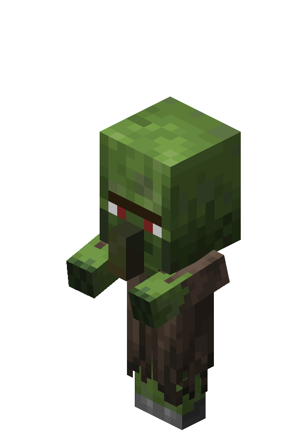A zombie villager is a variant of the zombie that can be cured into a normal villager using a golden apple while it is under the effect of Weakness.