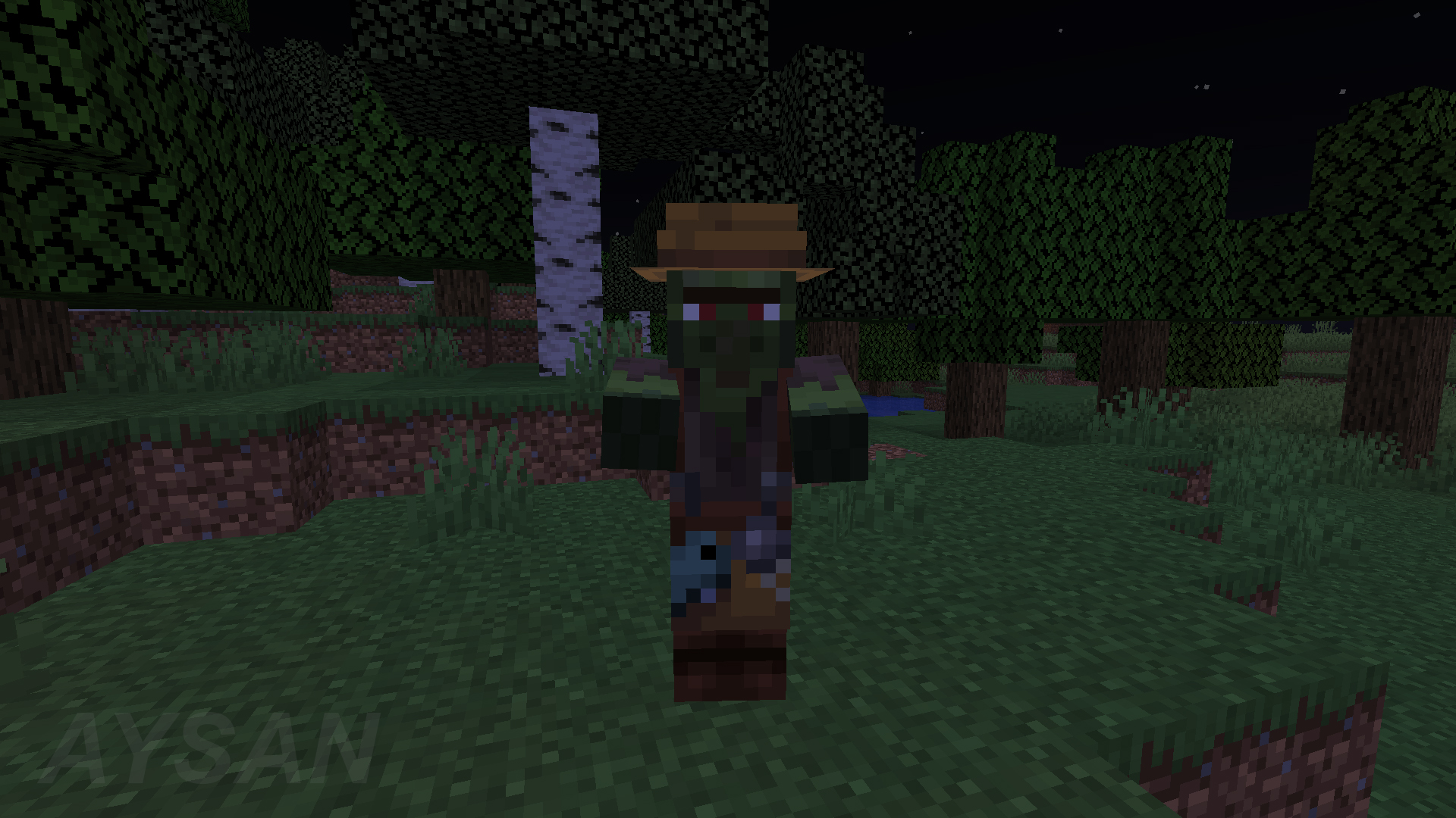 A zombie villager wearing a jack o'lantern.