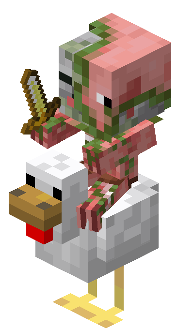- Baby zombified piglins can be jockeys upon chickens and striders. Uniquely on more than one mob (other than the player).