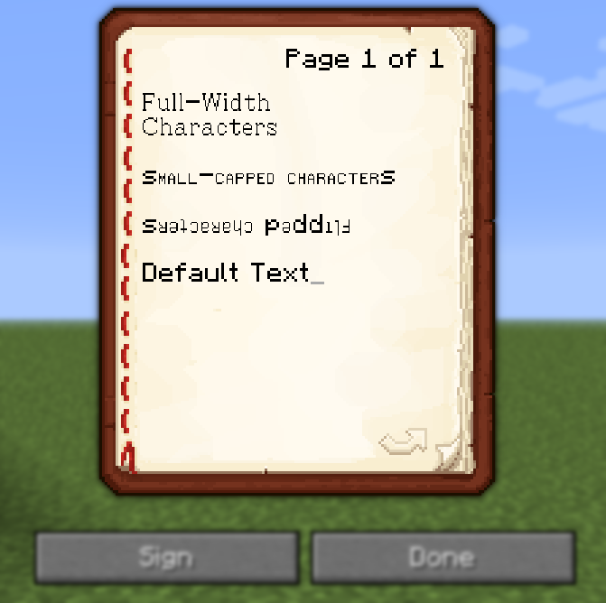 玩家能够将内容复制与粘贴到书中。然而,单次粘贴的内容超过一页所能容纳的字数的话,粘贴会失败。目前大部分Unicode字符都能被成书所支持,并且在粘贴时不会出太大问题。