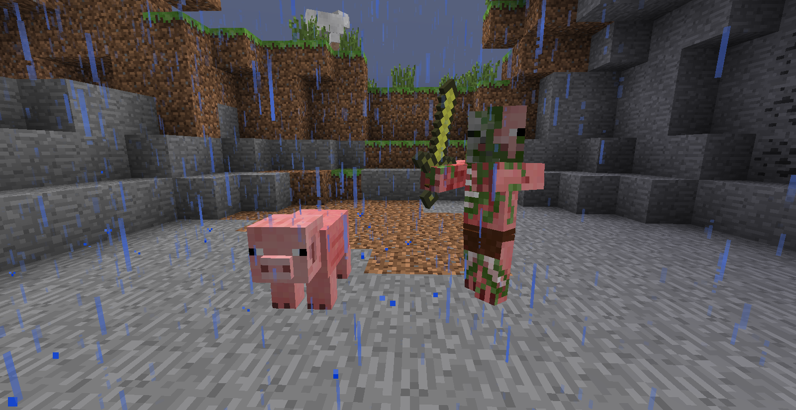 | 被闪电击中的猪现在能变成僵尸猪人。 | |||||