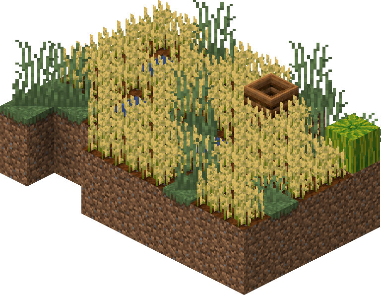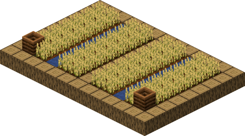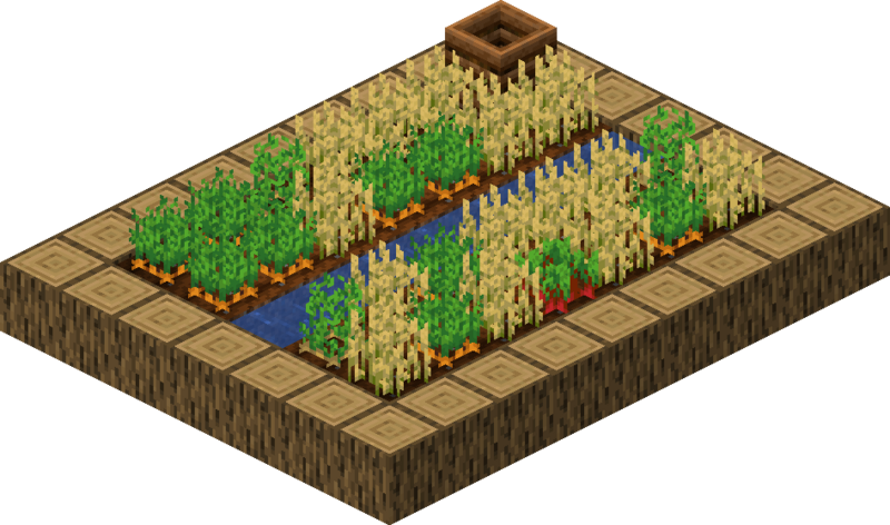 农田(Farm)是一类自然生成于村庄的结构,主要由耕地、特定的农作物方块、水和堆肥桶构成。