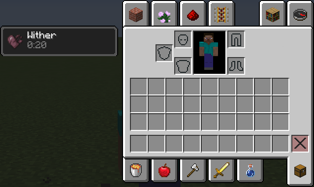 | 12w34b | 當凋零怪的生命值低於二分之一時,將會裝備凋零怪盔甲,並免疫箭傷。 | ||||