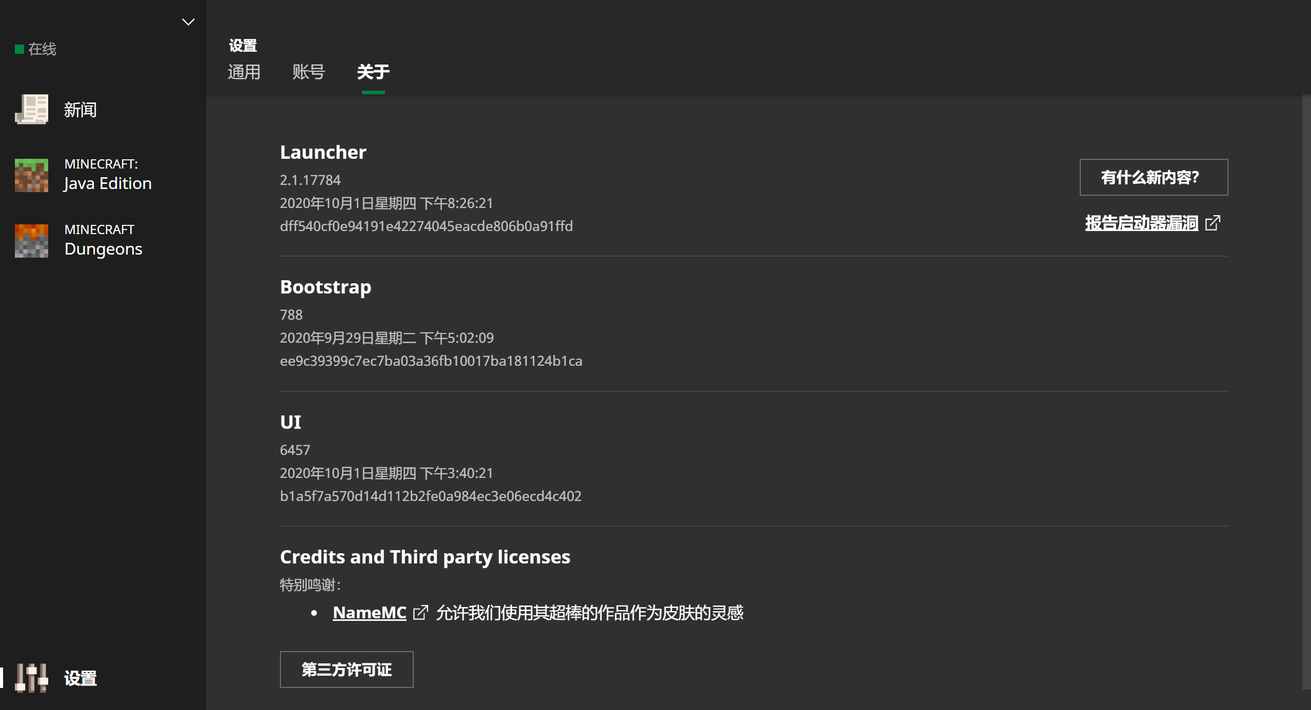 | Minecraft启动器与Minecraft Dungeons启动器版本 | |||||||||||||||||||||||||||||||