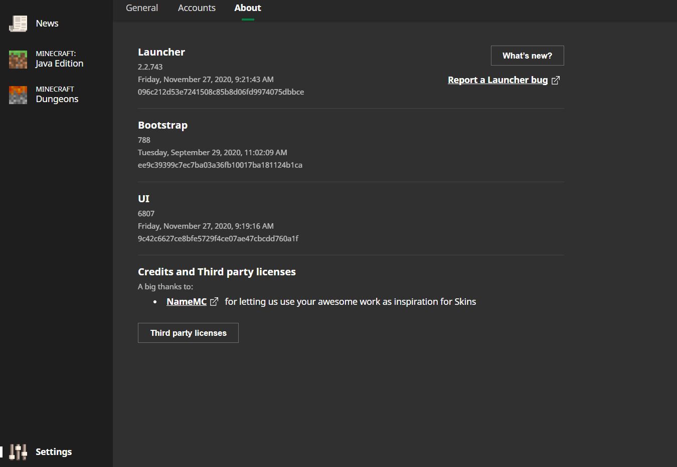 - MCL-15654 - 關於Mojang帳號(電子郵件)的資訊在「其他」後缺少一個逗號。