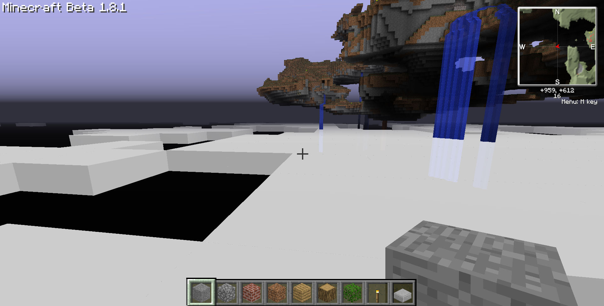 在Indev版本,曾出现一个叫做“浮岛”(Floating)的世界类型,会生成以空中岛屿为主要地形的地图主题。