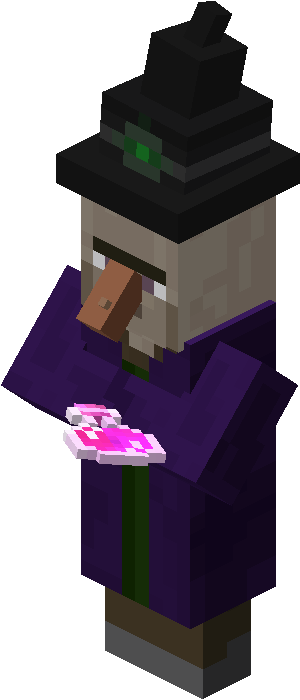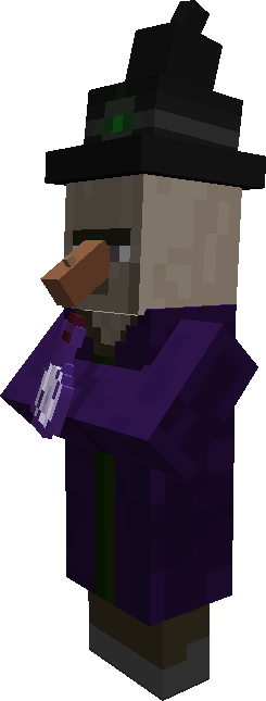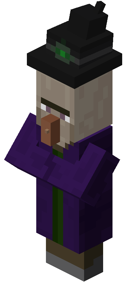 - ↑ “The cowl on the witch is not intended. The cowl was always in the texture map but it just wasn't rendered. Due to the new villager model system now it does.” – @JasperBoerstra,2018年12月13日