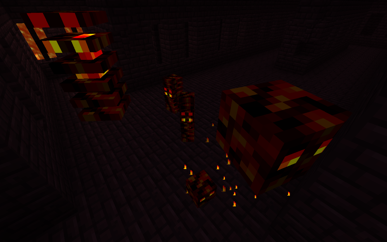 | “这从史莱姆的纹理替换成与下界风格相同开始——也就是熔岩史莱姆。但我命名时,我觉得只是给生物更换纹理这在行为有点懒。我想把它变得更加独特。我实在不能记得我怎么得到拥有分层方块的主意,但这是我现在最喜欢的生物之一了。这真的让我很感兴趣。这不以任何方式脱颖而出——我只是很喜欢它!你能够使用岩浆膏(一种岩浆怪的掉落物)来酿造抗火药水。” -Jeb[1] | |||||
