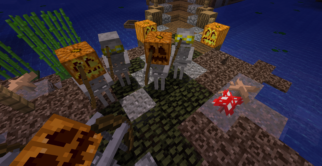在万圣节当日(10月31日),僵尸、骷髅、僵尸猪人、苦力怕和凋灵骷髅会时而戴上南瓜和南瓜灯。这些生物在被抢夺 II 魔咒击杀时有几率掉落这些物品。这种特性在Minecraft 1.4.2中加入,出现在2013、2014和2015年的万圣节中。