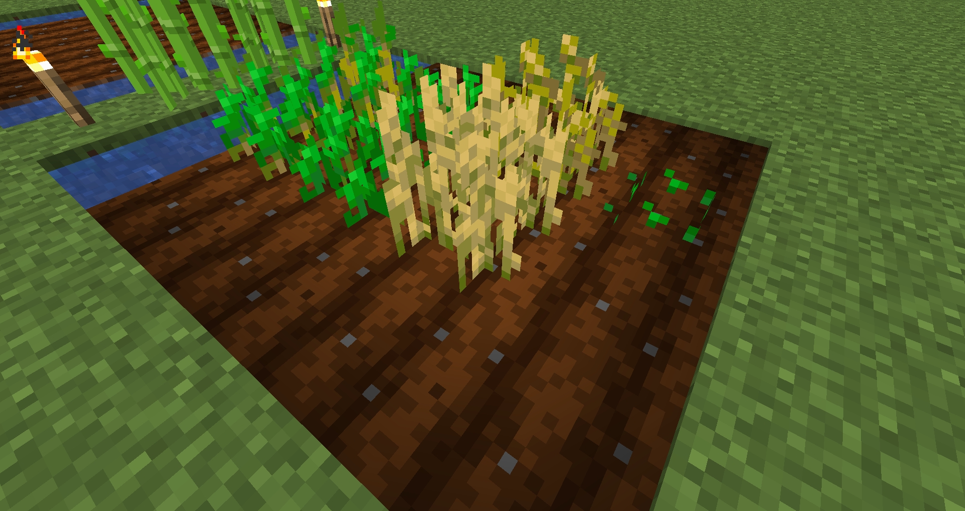 - 農作物上方的方塊擁有大於等於9的亮度。 這並不一定要是日光,所以火把、南瓜燈和螢光石也可以讓農作物在夜晚或地下生長。