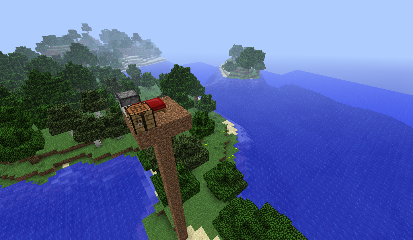 如果你找到了一棵高大的叢林木、大橡木或杉木,你可以收集你周圍的泥土,透過支柱跳的方法讓你到達樹頂,這將給你提供一個寬大而安全的避難所。