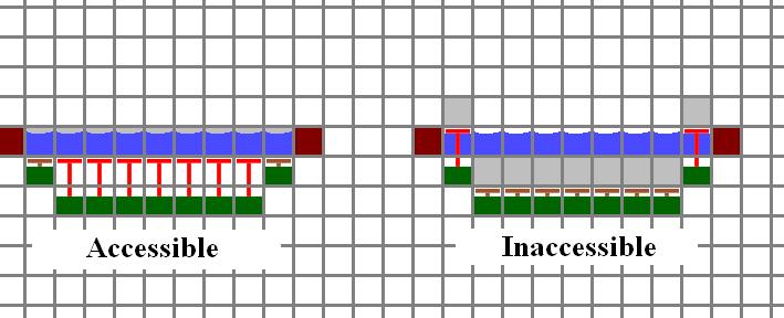一個5×5×3的小木屋,配備有1張床、1個工作台、1個熔爐、1個儲物箱、2根火把和一扇門。這種擺放方式使它們中任何一個都能正常使用